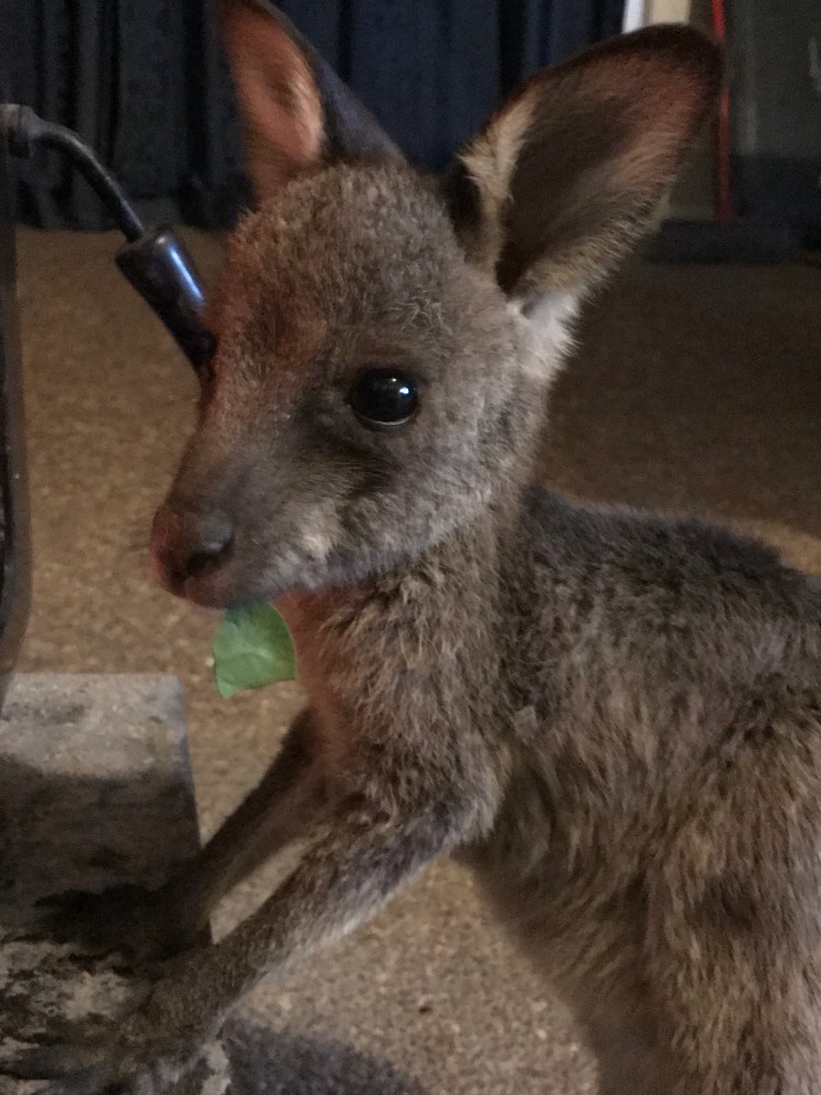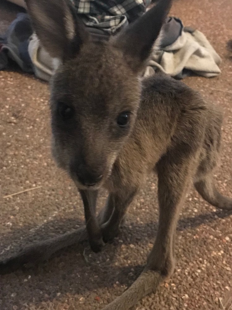 About 2 weeks ago my partner was coming home from work when he noticed in the table drain was a baby kangaroo. Poor little baby was there all abandoned with no mummy Roo in site not even any accidents which sadly happens often on these rural roads. He wrapped him up as the poor thing was freezing and brought him home. After doing a little research it claims that joeys be kept up to 30 degrees in their pouches as you could imagine we are just heading into winter and these nights are getting cold. The poor little thing was fighting death.