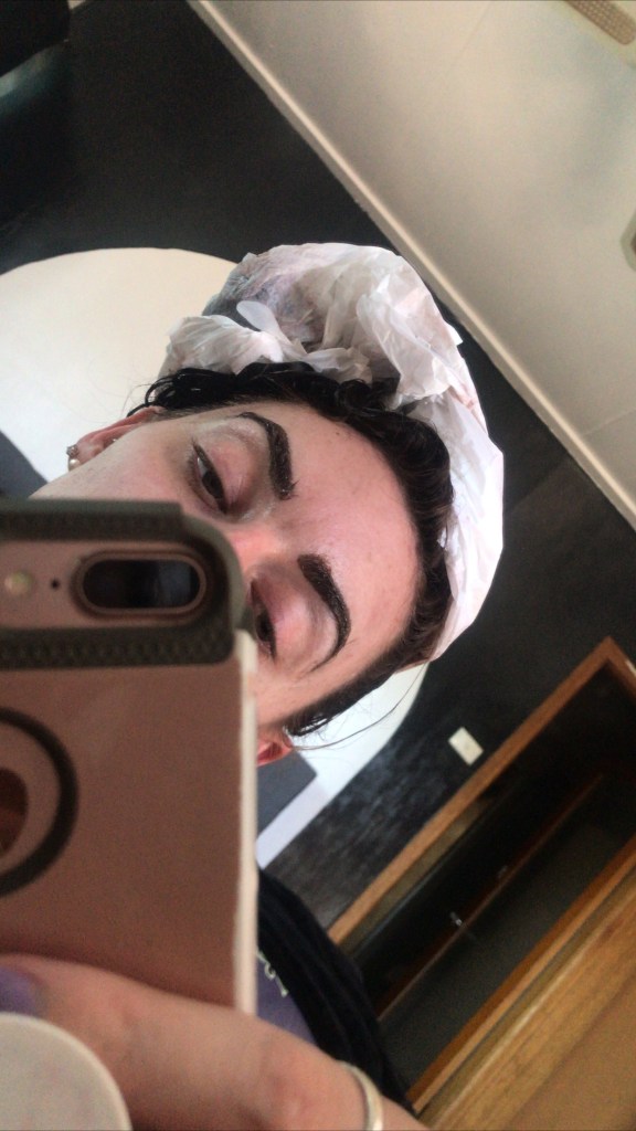 Using coconut oil I smeared around the edges of my eyebrows to avoid staining outside the lines of my brows. Following the instructions in the box I mixed the two parts together and applied the paste to shape I desired.
